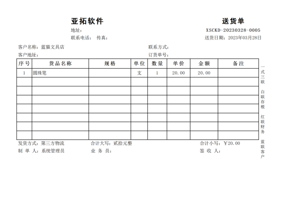 信管飛送貨單軟件、信管飛RMS軟件、信管飛倉庫管理軟件,都支持開單打印單據(jù),軟件中內(nèi)置了十幾種打印模板供客戶選擇使用,也支持自定義設(shè)計(jì)打印模板,有客戶打印時需要行數(shù)是固定的,我們以送貨單軟件為例設(shè)置下如何固定打印行數(shù)?