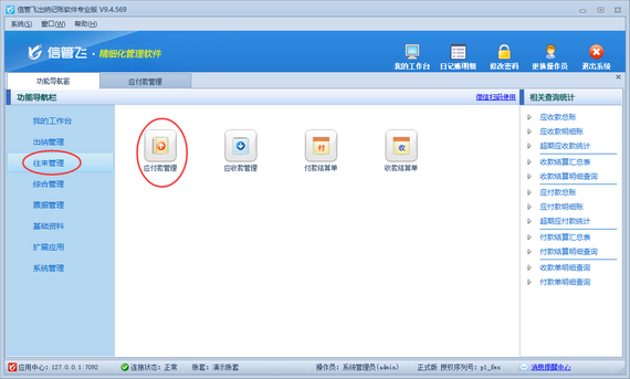 在功能導航窗點擊“往來管理”—》“應付款管理”打開應付款管理界面,如下圖所示。