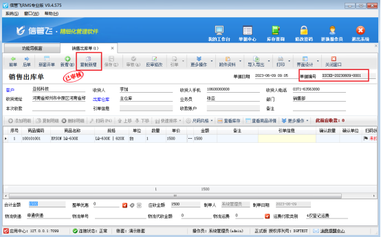 打開一張銷售單據(jù),在單據(jù)界面點(diǎn)擊復(fù)制新增,復(fù)制成功后被復(fù)制的單據(jù)編號(hào)提取到新增單據(jù)主體“引單信息”項(xiàng),如下圖所示: