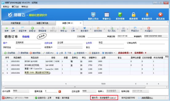 信管飛軟件中客戶下訂單后,新增訂單支持設置消息提醒功能,啟用消息提醒功能后設置消息接收人員,該人員在登錄軟件時,點擊消息提醒中心即可查看新增訂單單據并查看單據詳情,下面以信管飛RMS專業版為例介紹一下消息提醒功能。