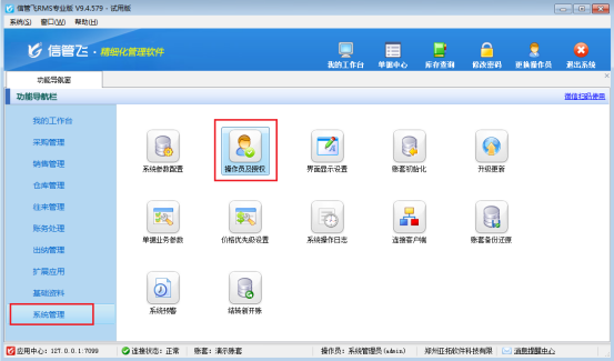信管飛RMS軟件支持設(shè)置多個(gè)操作員登錄軟件,并且支持添加權(quán)限組,同一個(gè)權(quán)限組下的操作員權(quán)限是一樣的,不需要再重新設(shè)置操作員權(quán)限,本文以信管飛RMS軟件專業(yè)版為例演示一下如何更換操作員所在權(quán)限組到其他權(quán)限組?