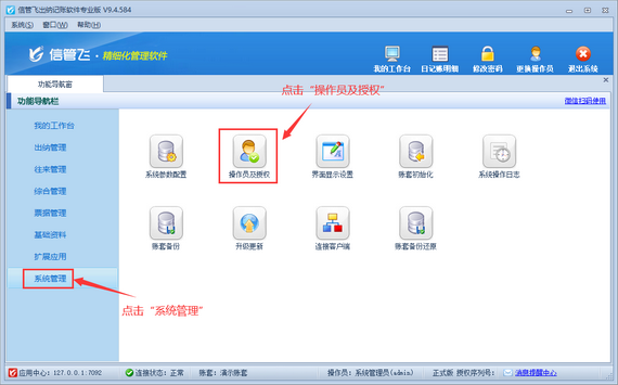 歡迎免費下載試用這款可設置操作員權限出納記賬軟件信管飛出納記賬軟件