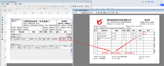 打印送貨單時同樣需要“贈品”字樣顯示,但是在設計模板時直接調用“單據明細.贈品”數據項,打印預覽送貨單時,如是贈品,打印預覽顯示1,而不是“贈品”字樣,如下圖所示。