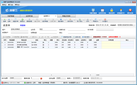 總的來說,信管飛送貨單軟件是一款集一鍵開單、輕松打印、智能統計、數據分析于一體的全能型管理軟件。它不僅能幫你告別手寫開單的繁瑣與不便,還能讓你的工作更加高效、有序。如果你還在為手寫送貨單而煩惱,那就趕緊試試信管飛送貨單軟件吧!相信它一定會成為你工作中的得力助手!