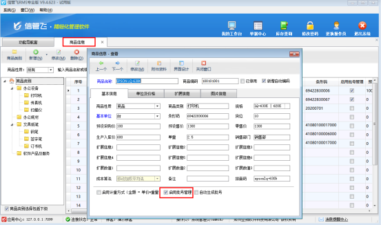 首先需要在基礎資料商品信息中勾選“啟用批號管理”,如下圖所示: