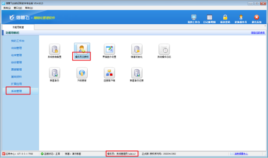 系統(tǒng)管理員登錄軟件,在功能導航窗點擊“系統(tǒng)管理”—》“操作員及授權”,進入“操作員管理及授權”界面,選擇操作員“張亞”,在其右側的功能模塊權限內選擇“綜合管理”模塊,將員工借款管理的“刪除”權限勾選取消,然后保存設置,如下圖所示。