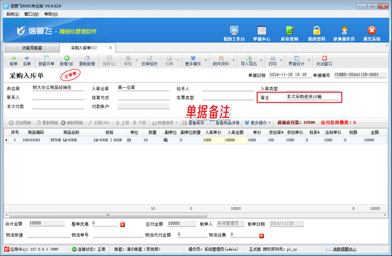 信管飛RMS支持管理往來應收應付款,支持對應收應付款進行收付款結算操作,方便用戶查看收付款情況。有用戶在對應收應付款進行收付款結算時,需要在收付款結算單界面顯示采購入庫單(銷售出庫單)的備注信息,本篇文章以設置付款結算單界面顯示采購入庫單單據備注為例介紹一下操作方法。