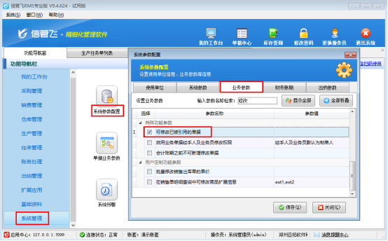 允許反審修改,需啟用下參數,在系統(tǒng)管理-系統(tǒng)參數配置中選擇“業(yè)務參數”,啟用參數“可修改已被引用的單據”,保存參數配置,如下圖所示: