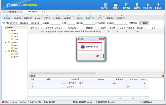 反結賬完成后,重新返回到會計憑證列表界面,此時該憑證可以正常執行作廢操作。