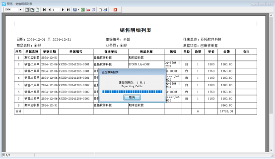 出現上圖提示信息窗口,一直處于正在準備報表窗口無法導出Excel文件,原因是桌面已存在“亞拓軟件科技對賬單”Excel表格并且表格處于打開狀態,再次導出相同名稱的對賬單表格。