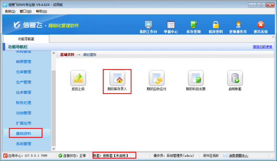 信管飛軟件本地版支持新增新賬套,在新年伊始可新增新賬套重新使用,之前賬套的期末庫存需要導(dǎo)入到新賬套中作為期初庫存數(shù)量,軟件如何操作?