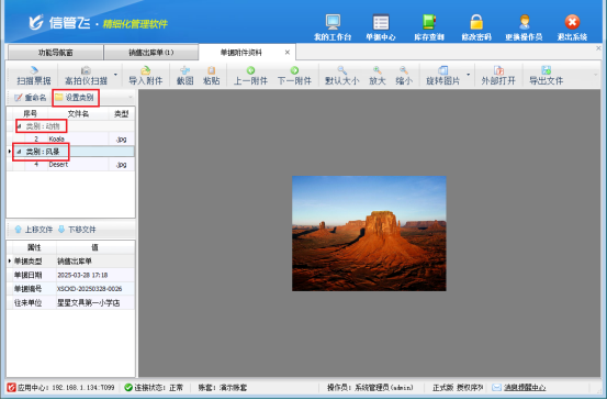 設置完成后,進入銷售管理模塊新開銷售出庫單并保存后,點擊工具欄上的“附件資料”按鈕,即可進入附件管理界面。此時,附件資料窗口上已經新增了“設置類別”按鈕。點擊該按鈕,可以輕松地設置常用附件資料的類別,讓附件管理更加有序。