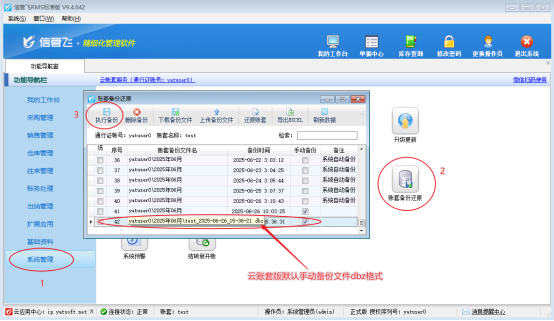 信管飛系列軟件包括信管飛RMS、信管飛倉庫管理軟件、信管飛送貨單軟件、信管飛出納記賬軟件等,均支持本地版和云賬套版本。軟件可以設(shè)置自動備份另外支持手動自行備份,本文以“信管飛RMS軟件”為例,云賬套版軟件備份賬套dbz格式如何還原數(shù)據(jù)。