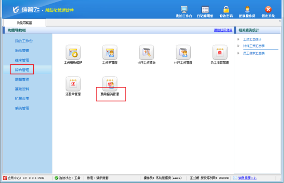 快速錄入報銷單:在軟件功能導航窗點擊“綜合管理”—》“費用報銷管理”,進入報銷管理界面。新增錄入報銷單,信息填寫直觀簡單,完成后點擊保存,輕松完成報銷單創建。
