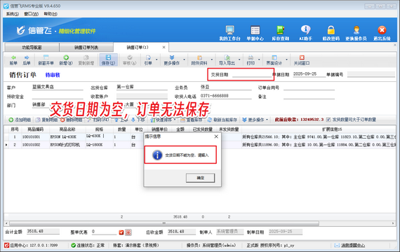 此功能亮點(diǎn)在于:訂單保存時系統(tǒng)自動檢測交貨日期,空缺則彈出警示并鎖定保存按鈕,從源頭消除人為疏漏。