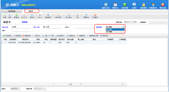 數據項自動切換:當用戶選擇調撥類型(同價 / 變價)后,單據明細區域會自動適配并切換所需填寫的數據項。例如,選擇變價調撥時,自動顯示 “調入單價”“調入金額”“調撥差額” 等字段;選擇同價調撥時,則隱藏無需填寫的變價相關字段,減少無效操作,降低人工填寫失誤率。