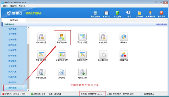 1、以管理員身份登錄軟件,進(jìn)入【系統(tǒng)管理】→【操作員及授權(quán)】