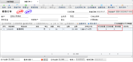 信管飛RMS軟件支持新開(kāi)銷售出庫(kù)單引用銷售訂單,但是部分用戶在使用信管飛RMS軟件的過(guò)程中不知道銷售退貨單如何引用銷售訂單,下面具體介紹下信管飛RMS軟件退貨單中如何引用新增訂單? 首先先開(kāi)一個(gè)銷售訂單,保存并審核,如下圖所示: 在功能導(dǎo)航窗點(diǎn)擊“系統(tǒng)管