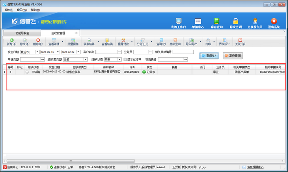 演示視頻觀看鏈接:刪除收款結銷余額轉存生成的客戶預付款記錄演示視頻 應收、應付賬款管理是現代企業資金管理的重要組成部分,其管理效果的好壞直接影響到企業經營的成敗,信管飛RMS含有應收應付往來賬款管理功能,支持對應收款、應付款、預收款、預付款、退貨款等進行管理。 系統支持收款結銷余額轉存生成