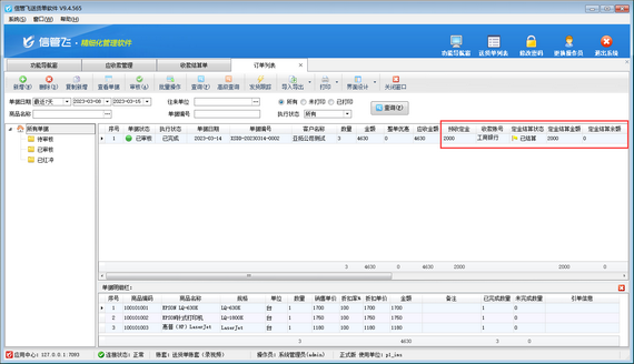 演示視頻觀看鏈接:銷售訂單的定金結(jié)算狀態(tài)如何變更演示視頻 信管飛軟件填開訂單時支持錄入預付定金進行訂貨,生成銷售出庫單實際發(fā)貨完成后在結(jié)算尾款。另外,銷售訂單生成銷售出庫單發(fā)貨時,預付定金系統(tǒng)并沒有自動沖銷銷售應收款。如下圖所示,已完成的銷售訂單“定金結(jié)算狀態(tài)”為“未結(jié)算”狀態(tài),本文介紹一下銷售訂單的“定金結(jié)算狀態(tài)”如何變更?