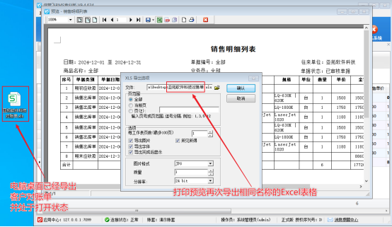 進銷存管理軟件、信管飛倉庫管理軟件、信管飛送貨單軟件、信管飛出納記賬軟件等軟件內(nèi)都提供的有打印預(yù)覽及打印功能,可以打印送貨單、送貨明細(xì)對賬單及各類統(tǒng)計報表。多數(shù)用戶除了打印送貨單,還會將送貨單或者送貨明細(xì)對賬單的打印預(yù)覽效果導(dǎo)出為Excel文件直接發(fā)給客戶與客戶進行對賬。遇到打印模板的打印預(yù)覽圖不能正常導(dǎo)出為Excel文件,該如何解決呢?下面我們以