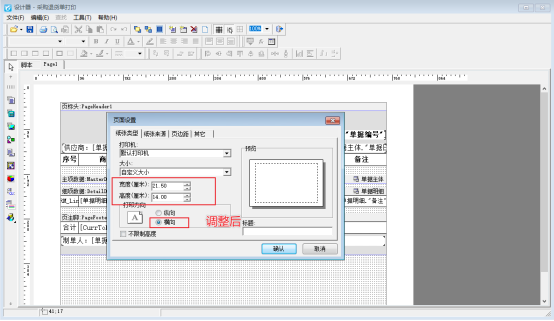 信管飛系列軟件支持自定義設(shè)計打印模板格式,打印預(yù)覽顯示正常,遇到紙張打印出來內(nèi)容缺失一部分的問題。以采購?fù)素泦未蛴∧0鍨槔痉断氯绾谓鉀Q打印缺失一部分內(nèi)容的問題? 經(jīng)檢查,電腦可以正常打印其他文檔,并且打印模板預(yù)覽導(dǎo)出PDF文件也可以正常打印。解決方式:調(diào)整打印模板的橫縱方向。