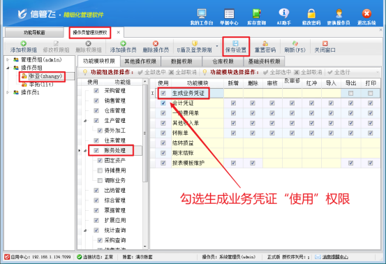 信管飛RMS專業(yè)版包含財務(wù)處理模塊,支持用戶高效、準(zhǔn)確地登記會計憑證,為企業(yè)的財務(wù)管理提供堅實的數(shù)據(jù)基礎(chǔ)。在實際使用過程中,部分用戶反饋,當(dāng)使用操作賬號登錄軟件進行賬務(wù)處理時,界面中未顯示生成業(yè)務(wù)憑證模塊,而系統(tǒng)管理員賬號登錄后該模塊卻能正常顯示,這是因為操作員沒有生成業(yè)務(wù)憑證權(quán)限導(dǎo)致的,本篇文章介紹下如何解決?