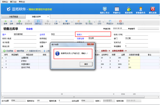 為了避免在開單的時(shí)候漏掉必須要填寫的信息,亞拓管理軟件、紅管家倉(cāng)庫(kù)管理軟件、紅管家送貨單軟件等支持設(shè)計(jì)單據(jù)主體必填項(xiàng)。下邊以亞拓管理軟件專業(yè)版“銷售出庫(kù)單”開單為例,設(shè)置單據(jù)主體必填項(xiàng)。 新增一個(gè)銷售出庫(kù)單,軟件中已經(jīng)設(shè)置好“客戶、業(yè)務(wù)員、出庫(kù)倉(cāng)庫(kù)”為必填項(xiàng)(必填項(xiàng)設(shè)置為藍(lán)色顯示),如果要再增加“收貨人”為必填項(xiàng),就需要進(jìn)行