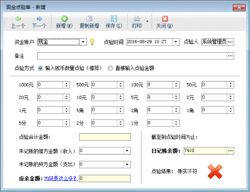 亞拓管理軟件標(biāo)準(zhǔn)版和專業(yè)版、紅管家出納記賬軟件標(biāo)準(zhǔn)版和專業(yè)版都包括出納管理功能,出納管理主要包含現(xiàn)金日記賬、銀行日記賬、現(xiàn)金點(diǎn)驗(yàn)單、銀行對(duì)賬單、銀行對(duì)賬和出納期末結(jié)賬等功能。下面我們以亞拓管理軟件專業(yè)版為例講一下出納模塊中現(xiàn)金點(diǎn)驗(yàn)單的使用方法。 在功能導(dǎo)航窗,點(diǎn)擊“出納管理”—》“現(xiàn)金點(diǎn)驗(yàn)單”,即可進(jìn)入“現(xiàn)金點(diǎn)驗(yàn)單”界面,如