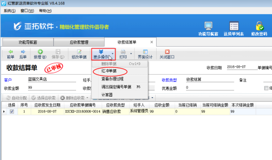 亞拓軟件公司旗下的紅管家送貨單軟件、出納記賬軟件、亞拓管理軟件都支持應(yīng)收款管理,可以對(duì)已收貨款進(jìn)行核銷。更方便管理貨款,使往來賬更加一目了然。 有客戶在核銷往來賬的時(shí)候,有時(shí)會(huì)出現(xiàn)誤核銷的情況,這個(gè)時(shí)候想刪除核銷記錄,或者想刪除應(yīng)收款,這個(gè)時(shí)候系統(tǒng)會(huì)提示“當(dāng)前應(yīng)收款記錄為業(yè)務(wù)單據(jù)生成的,無法直接刪除”