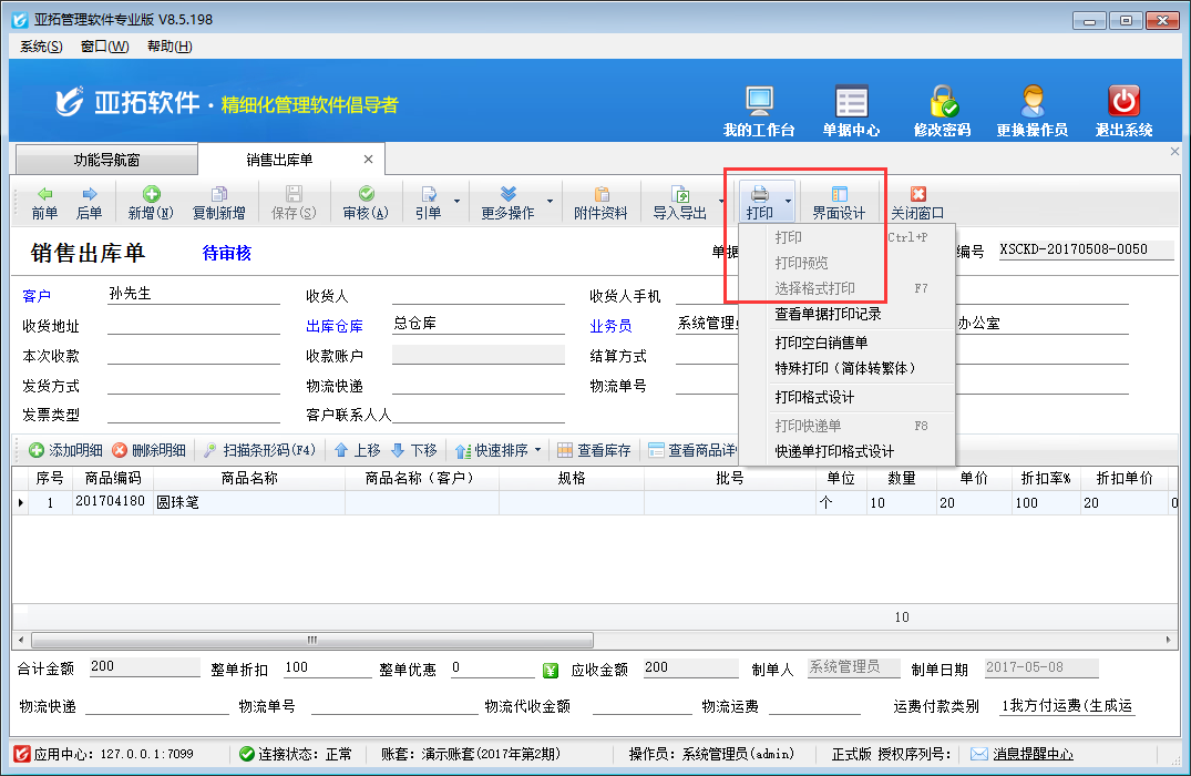 紅管家送貨單打印軟件是一款針對中小型企業(yè)開發(fā)的集送貨管理(發(fā)貨管理)、退貨管理(銷售退貨)、銷售收款(應(yīng)收款管理)等功能為一體的送貨管理及打印軟件(送貨單打印軟件、發(fā)貨單打印軟件、出貨單打印軟件、收據(jù)打印軟件、貨單票據(jù)打印軟件)。 紅管家送貨單軟件、紅管家倉庫管理軟件、亞拓管理軟件開單后可以直接打印單據(jù),另外軟件還支持打印空