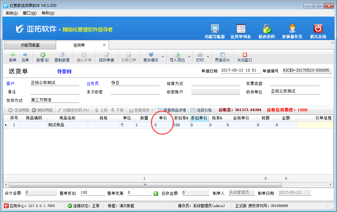 亞拓軟件開發(fā)的亞拓管理軟件、紅管家倉庫管理軟件、紅管家送貨單軟件等在開單據(jù)時如果商品單價為0,系統(tǒng)會彈出提示信息,是否需要繼續(xù)保存,如下圖一所示,這樣以免用戶在添加商品明細(xì)時忘了填寫單價,好及時錄入,但是有一部分用戶在開單據(jù)時只需要填寫商品數(shù)量,不需要填寫單價,那么該怎么設(shè)置系統(tǒng)才能不彈出以下提示信息呢?本篇文章以紅管家送貨單軟件為例介紹一下如何設(shè)置送貨單開單