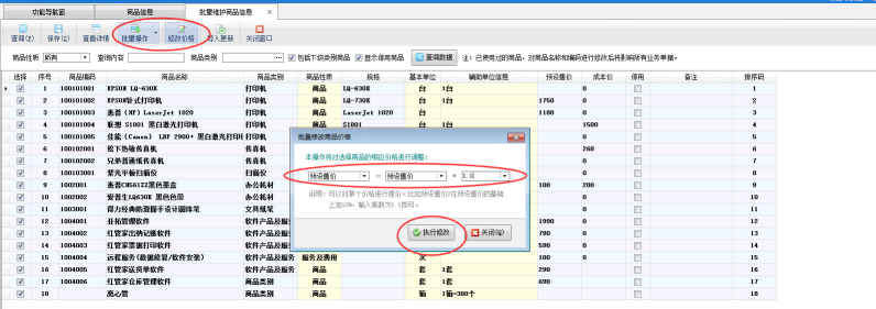 紅管家送貨單軟件、紅管家倉(cāng)庫(kù)管理軟件、亞拓管理軟件都支持對(duì)商品“預(yù)設(shè)售價(jià)”進(jìn)行批量提價(jià),本篇文章我們以紅管家送貨單軟件為例來(lái)詳細(xì)介紹一下如何對(duì)商品“預(yù)設(shè)售價(jià)”進(jìn)行批量提價(jià)? 在功能導(dǎo)航窗點(diǎn)擊“基礎(chǔ)資料”—“商品信息”打開(kāi)商品信息主界面,在商品信息界面點(diǎn)擊“更多操作”—“批量維護(hù)商品信息”按鈕可以打開(kāi)批量維護(hù)商品信息界面,如下
