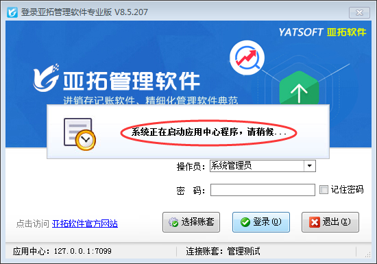 亞拓軟件新架構(gòu)版本安裝完成后會(huì)有兩個(gè)圖標(biāo),紅色圖標(biāo)為應(yīng)用中心、藍(lán)色圖標(biāo)為客戶端程序。之前版本使用需要時(shí)需要先打開(kāi)紅色的應(yīng)用中心然后再打開(kāi)藍(lán)色的客戶端程序。為了提高用戶使用便捷性,軟件解決這一問(wèn)題,支持應(yīng)用中心未開(kāi)啟時(shí)直接登錄客戶端程序系統(tǒng)會(huì)自動(dòng)啟動(dòng)應(yīng)用中心程序。 以亞拓管理軟件為例示范下,直接打開(kāi)客戶