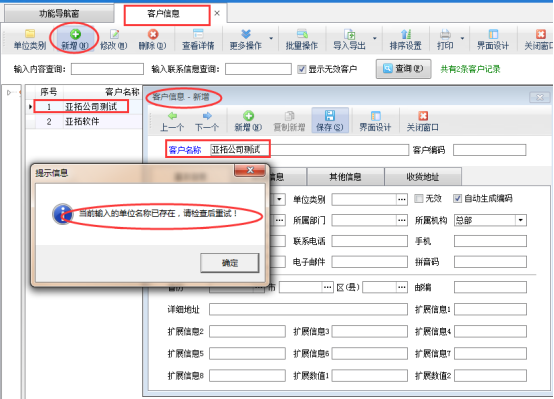 亞拓軟件自主研發(fā)的亞拓管理軟件、紅管家系列的送貨單、出納記賬軟件等支持新增往來(lái)單位信息(供應(yīng)商或客戶信息),為了避免增加的往來(lái)單位信息出現(xiàn)重復(fù),軟件支持設(shè)置參數(shù)不允許往來(lái)單位名稱重復(fù)。 以亞拓管理軟件專業(yè)版為例,在系統(tǒng)管理—》系統(tǒng)參數(shù)配置—》業(yè)務(wù)參數(shù)中的“數(shù)據(jù)可重復(fù)參數(shù)”把“往來(lái)單位名稱可重