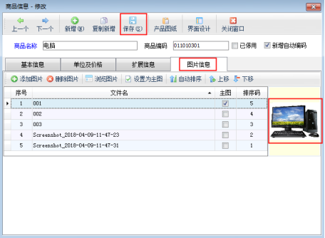 亞拓管理軟件(標(biāo)準(zhǔn)版與專業(yè)版)和信管飛倉(cāng)庫(kù)管理軟件都可以對(duì)商品信息進(jìn)行管理,都支持上傳商品圖片,以便用戶查看商品圖片信息。本篇文章以亞拓管理軟件專業(yè)版為例介紹一下如何上傳商品圖片。 在功能導(dǎo)航窗點(diǎn)“基礎(chǔ)資料”—》“商品信息”即可進(jìn)入“商品信息”界面,對(duì)商品進(jìn)行新增或修改時(shí)可以編輯商品信息、上傳商品圖片信息。以商品“電腦”為例
