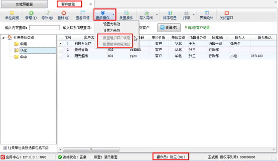 亞拓管理軟件、信管飛送貨單軟件、信管飛倉(cāng)庫(kù)管理軟件等都支持批量維護(hù)客戶信息,可批量維護(hù)客戶信息的名稱、聯(lián)系人、電話、地址等信息。另外軟件中也支持設(shè)置操作員不可批量維護(hù)客戶信息,本篇文章我們以信管飛送貨單軟件為例詳細(xì)介紹一下如何設(shè)置操作員不可批量維護(hù)客戶信息? 在功能導(dǎo)航窗點(diǎn)“系統(tǒng)管理”—》“操作員及授權(quán)”即可進(jìn)入“操作員管理