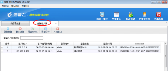 亞拓軟件自主研發的信管飛RMS(進銷存軟件)、信管飛倉庫管理軟件、信管飛送貨單軟件、信管飛出納記賬軟件等軟件都支持多用戶同時登錄使用軟件,數據同步共享。 本文我們以信管飛RMS為例,介紹一下如何查看已登錄軟件的連接客戶端。 第一種方法:打開應用中心程序后,在電腦右下角雙擊打開紅色圖標,系統