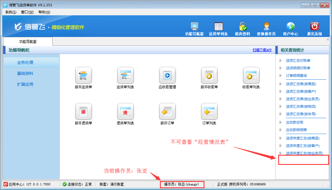 信管飛RMS、信管飛倉庫管理軟件、信管飛送貨單軟件、信管飛出納記賬軟件中都支持單據(jù)界面設計,用戶可根據(jù)自身業(yè)務要求對軟件界面進行設置,包括配置數(shù)據(jù)項名稱、啟用擴展數(shù)據(jù)項、顯示先后順序、設置顯示寬度、對齊方式、是否必填、取值方式及取值設置等。 軟件內(nèi)都可以設置多個操作員并對操作員賬號設置權限,部分用戶不希望員工賬號可以隨便修改