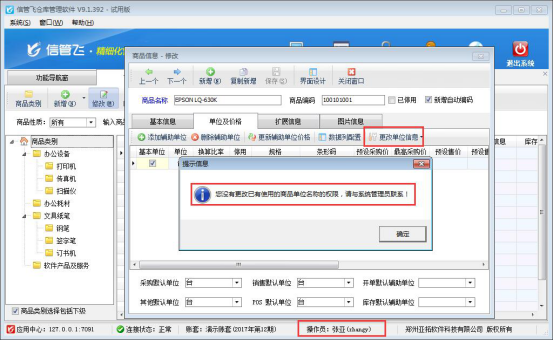 信管飛倉庫管理軟件是一款包括采購入庫、銷售出庫、庫存盤點、成本核算等業(yè)務(wù)管理功能,并支持擴展模塊生產(chǎn)管理(生產(chǎn)計劃、生產(chǎn)任務(wù)、領(lǐng)料出庫、成品入庫、費用分攤等功能),是商貿(mào)企業(yè)和中小型生產(chǎn)制造企業(yè)理想的庫存管理軟件。 信管飛倉庫管理軟件支持更改已使用過的商品單位信息,同時也支持設(shè)置操作員不可