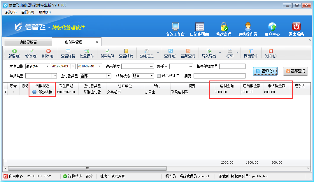 付款結(jié)算單用來登記付款信息(付款對象即供應(yīng)商、付款賬戶、付款金額、經(jīng)手人等),并結(jié)銷應(yīng)付款記錄。正常情況下,應(yīng)付金額為多少,即我們支付供應(yīng)商多少貨款,但是部分情況下,我們給供應(yīng)商支付貨款時可能因為各種原因只能給供應(yīng)商支付其中一部分,然后過段時間在支付剩余貨款。本篇文章以出納記賬軟件為例演示一下部分付款的情況下如何開付款結(jié)算單。