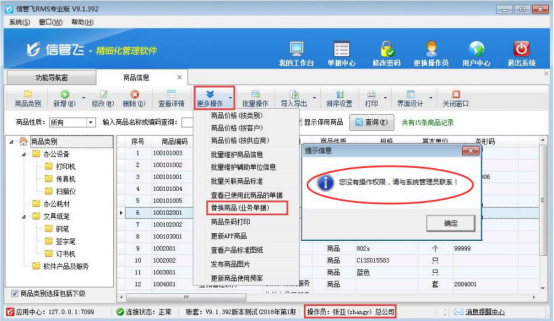 信管飛RMS軟件、信管飛倉庫管理軟件、信管飛送貨單軟件等支持設(shè)置多個操作員登錄軟件,對登錄的操作員軟件可控制操作員權(quán)限。開單過程中可能存在單據(jù)商品信息輸入錯誤現(xiàn)象,軟件可在基礎(chǔ)資料—》商品信息中對錯誤商品進行替換。為避免多個操作員重復(fù)替換出錯,可設(shè)置操作員不可批量替換商品(業(yè)務(wù)單據(jù))的權(quán)限,可指定一個操作員允許操作。 &nbs