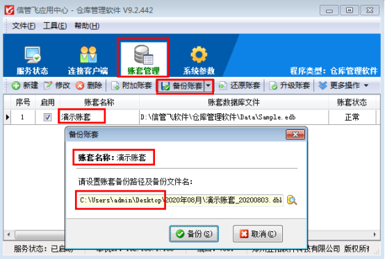 信管飛倉庫管理軟件、信管飛出納記賬軟件、信管飛RMS、信管飛送貨單軟件等都支持設(shè)置賬套自動備份,備份數(shù)據(jù)默認(rèn)存儲在安裝文件目錄下的“賬套數(shù)據(jù)備份”中。軟件備份數(shù)據(jù)保留軟件所有數(shù)據(jù),更換電腦或者重裝系統(tǒng)可以使用備份數(shù)據(jù)進(jìn)行恢復(fù)。為避免只能安裝在電腦系統(tǒng)盤上的軟件重裝系統(tǒng)時清空軟件備份數(shù)據(jù),軟件支持修改默認(rèn)備份存儲目錄。 本文以