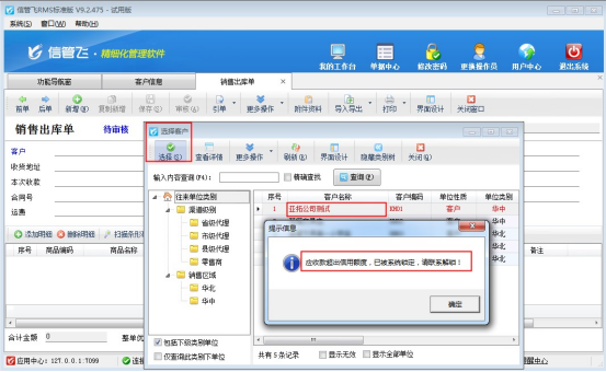 信管飛RMS軟件包含應收應付款功能,可對客戶和供應商設置應收應付信用額,客戶在信用額度內(nèi)可先收貨后付款,對于超過信用額度的客戶,軟件支持在基礎資料—“客戶信息”中設置鎖定功能,不允許繼續(xù)開單,付款后可進行解鎖。本文以“信管飛RMS標準版為例”,示范下如何鎖定超出信用額度的客戶。超出信用額度的客戶“亞拓公司測試”在未設置鎖定前,開銷售出庫單審核單據(jù)會提示“當前往來單位將會超出應收信用額度,是否繼續(xù)”